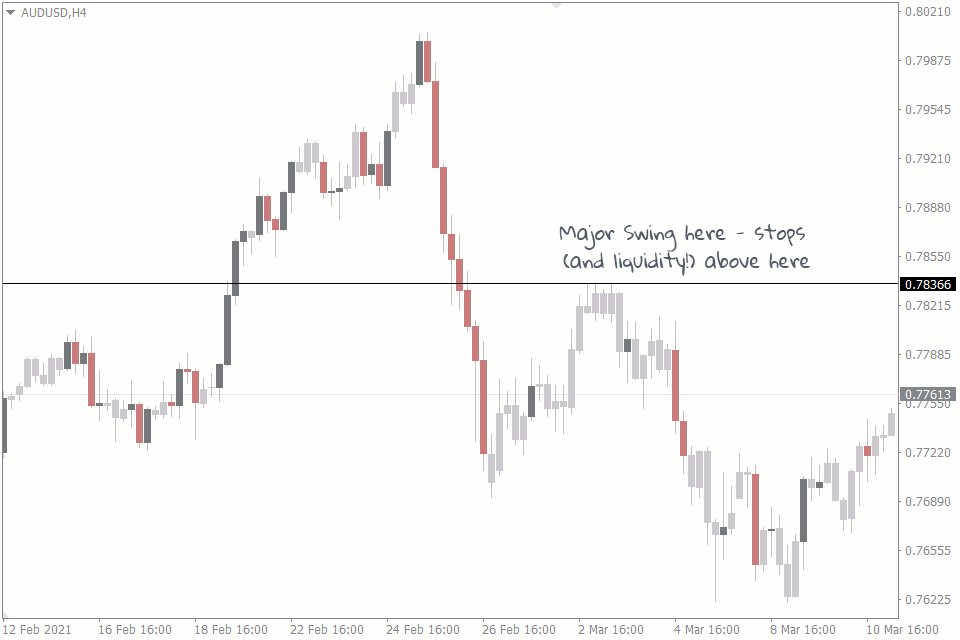 Identifying liquidity pools is as simple as finding glaringly obvious points of support and resistance where traders are likely to place their stops.