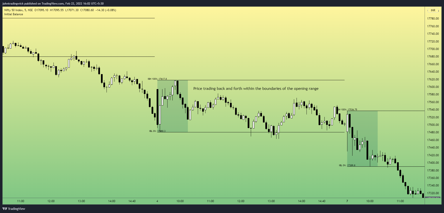 During this type of day, you will usually see price trade back and forth within the boundaries of the opening range, as fair trade is easily facilitated.