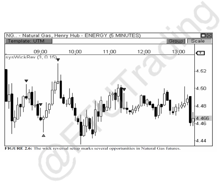 One easy method to help further confirm this setup requires the bar's close price following the reversal wick-candlestick to be lower than the low of the wicking candle –for taking shorts (reverse for longs).